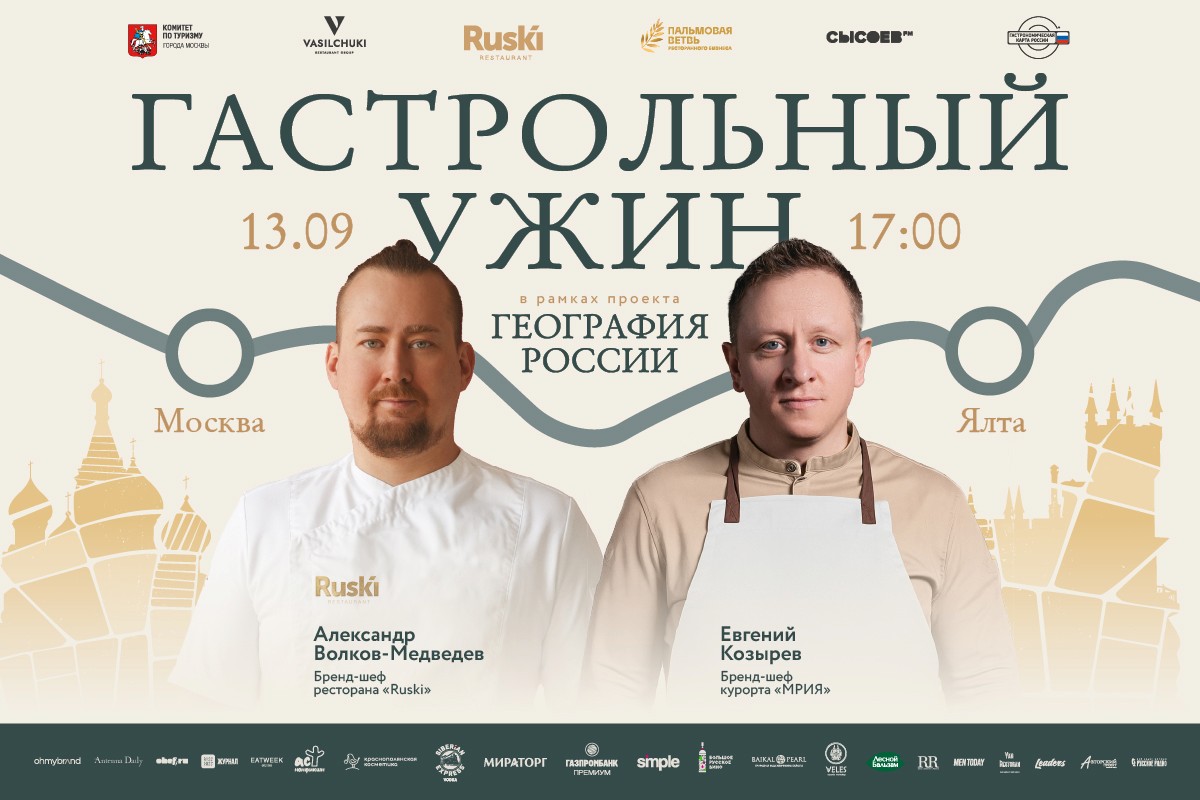 Гастрольный ужин пройдет в четыре руки, во время которого шеф московского ресторана RUSKI Александр Волков-Медведев и бренд-шеф курорта МРИЯ Евгений Козырев совместно презентуют блюда, раскрывающие вкусы локальных ингредиентов и особенности региональной кухни.