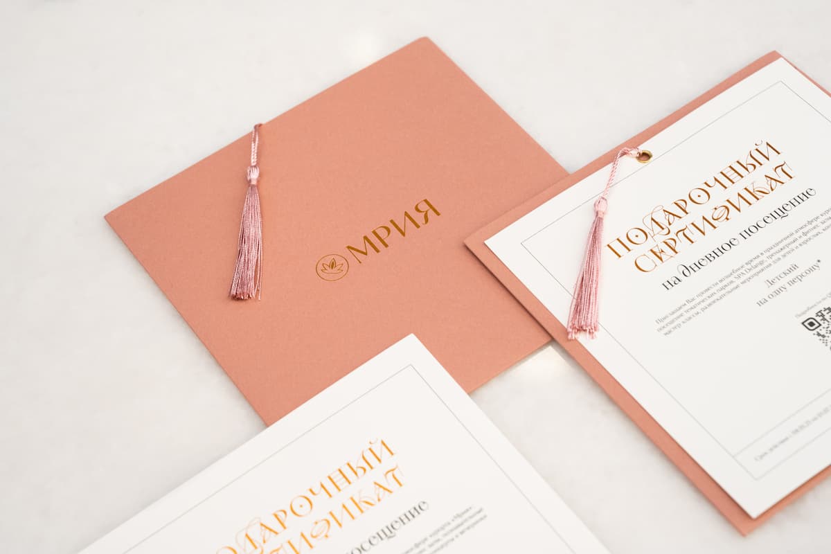 Вы можете забрать готовый сертификат в стильном конверте в нашем Велком-центре или оформить его в электронном виде.