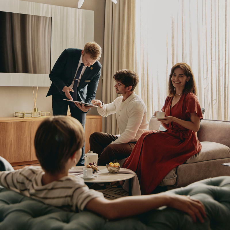 - Батлер – человек, который будет сопровождать вас на протяжении всего отдыха. Встретит вашу семью, проводит на виллу, самостоятельно оформит все документы для заселения, поможет решить любые вопросы, организовать мероприятие и будет исполнять ваши пожелания.