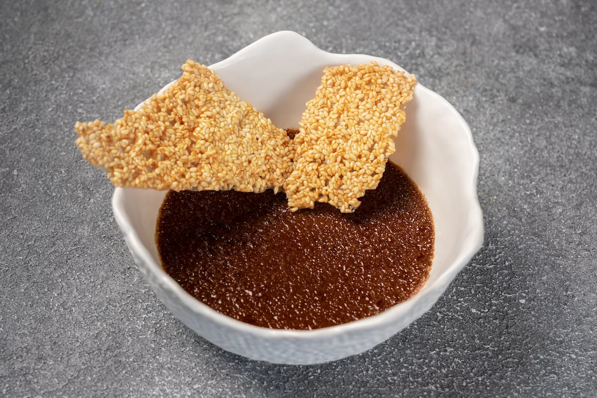 «Айше» — утонченный коктейль на основе ликера медового виски в сочетании с сиропом из клубники, груши и гречихи и пеной из копченой сметаны.