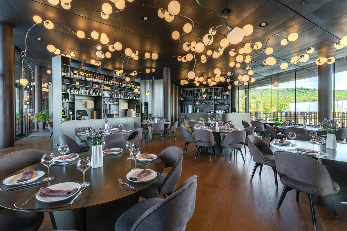 Насладитесь романтическим ужином с панорамным видом на виноградники и необыкновенную архитектуру Винного парка.