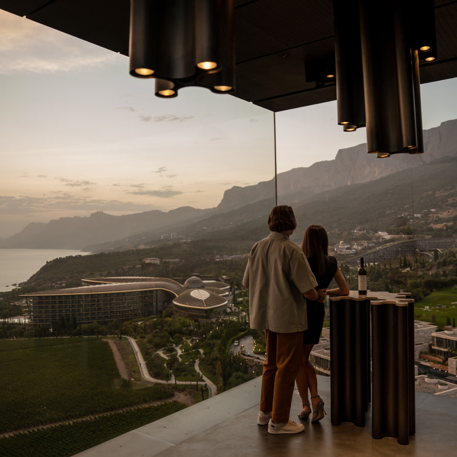 Башня Винного парка — это место, где можно побыть в уединении и насладиться захватывающим дух панорамным видом. Смотровая площадка на высоте 45 метров поможет детально рассмотреть всю сложность геометрии нашего виноградника, окруженного бескрайними просторами моря с одной стороны и величественными горами с другой.
